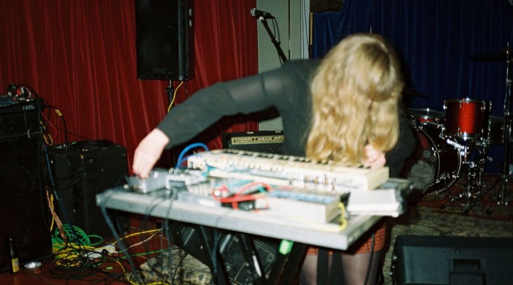 When she looked up to sing, Ducklingmonster’s long high pitched yells about neon and the radio were repeated through layers of echo. She put her two keyboards and her drum machine through multiple effects, playing simple squeaky keyboard melodies over a bed of feedback. The drone under Ducklingmonster’s music isn’t warm fuzz: it’s sharp and harsh. She explained later that this bass drone sound, which she loves, comes from her broken casio keyboard’s ‘distorted gating’.