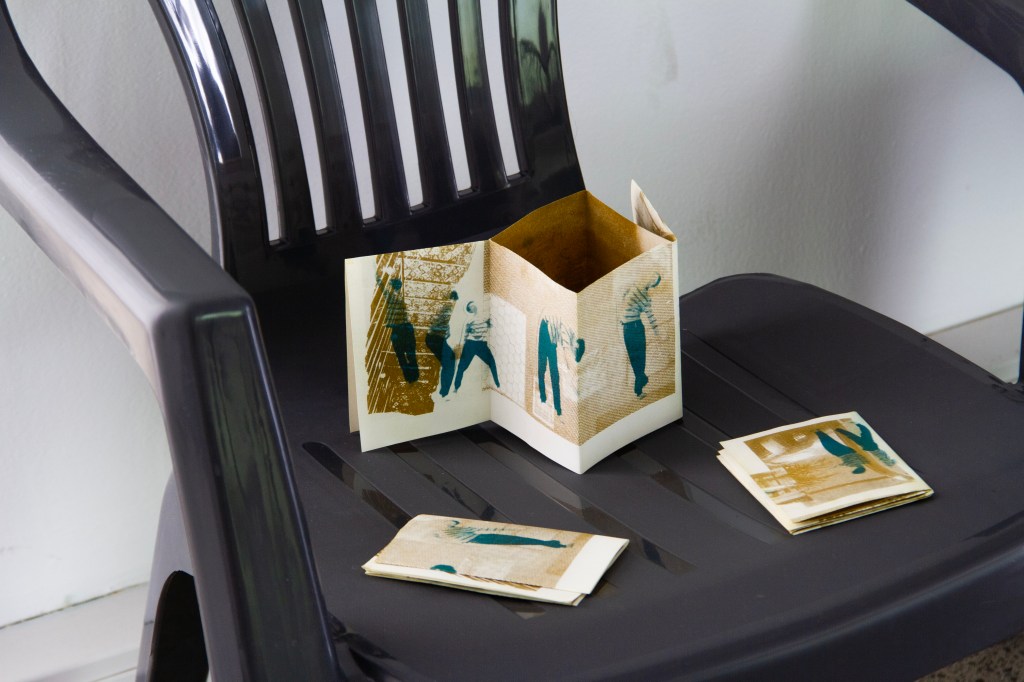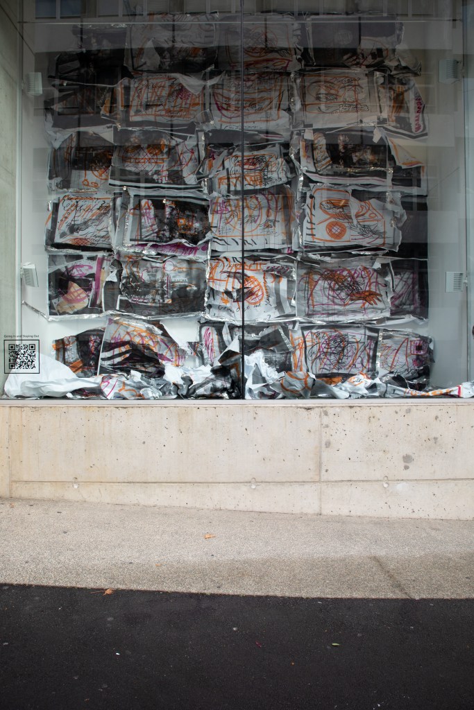Screen window rip two interior/exterior viewsPeek-a-boo viewsAV Trolley functional objects and process corner with repeats of page works and unfolding elements with text playRisograph Programme Comic
