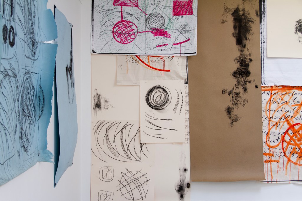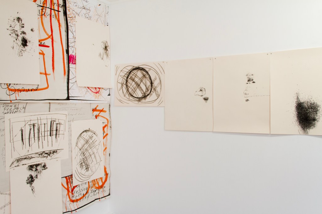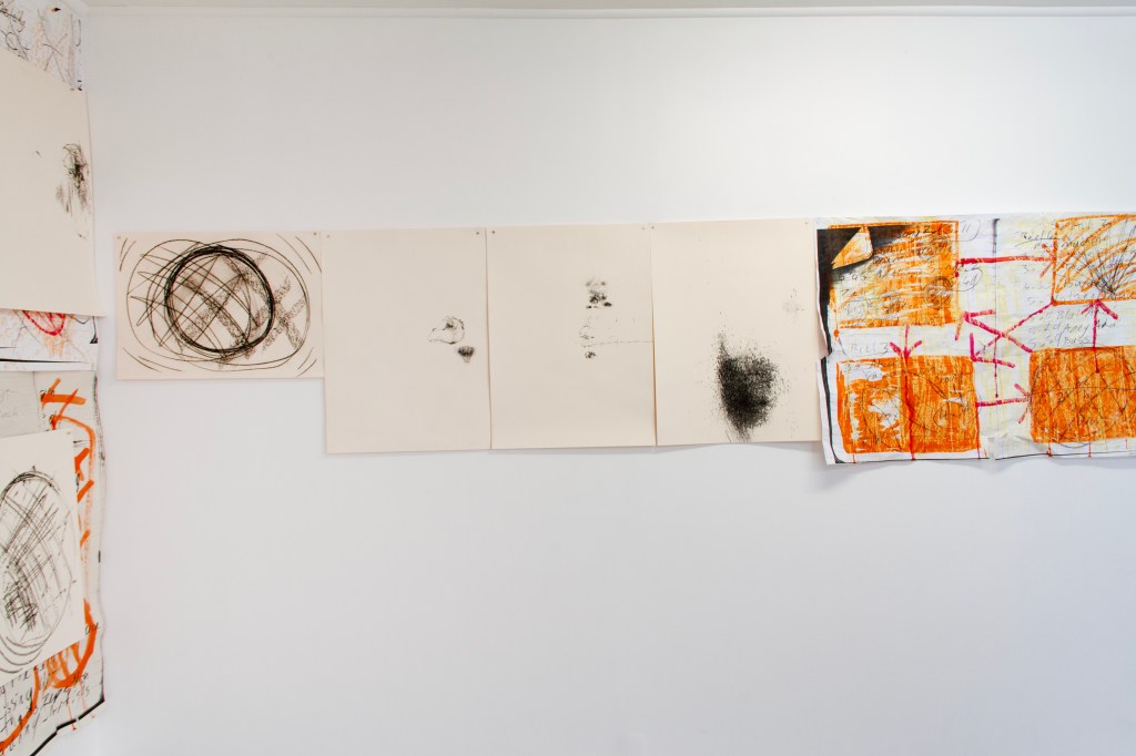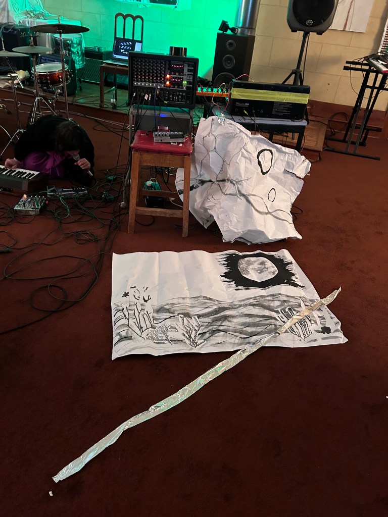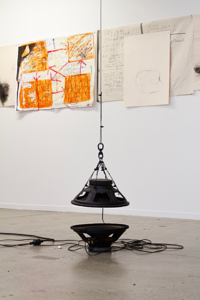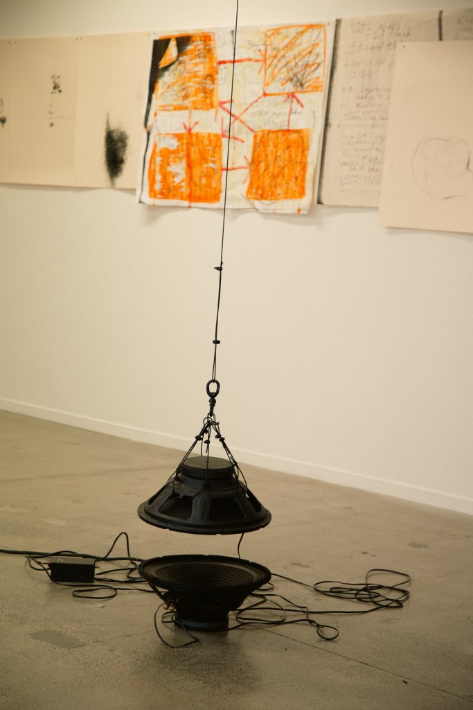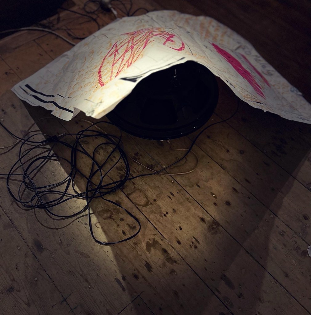 Invisible Neighbours is an installation of drawings, text and sound objects that focus on the generative nature of feedback. As a collaboration the artists are working with feedback as a sonic material that they create and respond to, through drawing, electromagnetism, pedals, amps, keyboard, bodies, conversations and listening to special places.