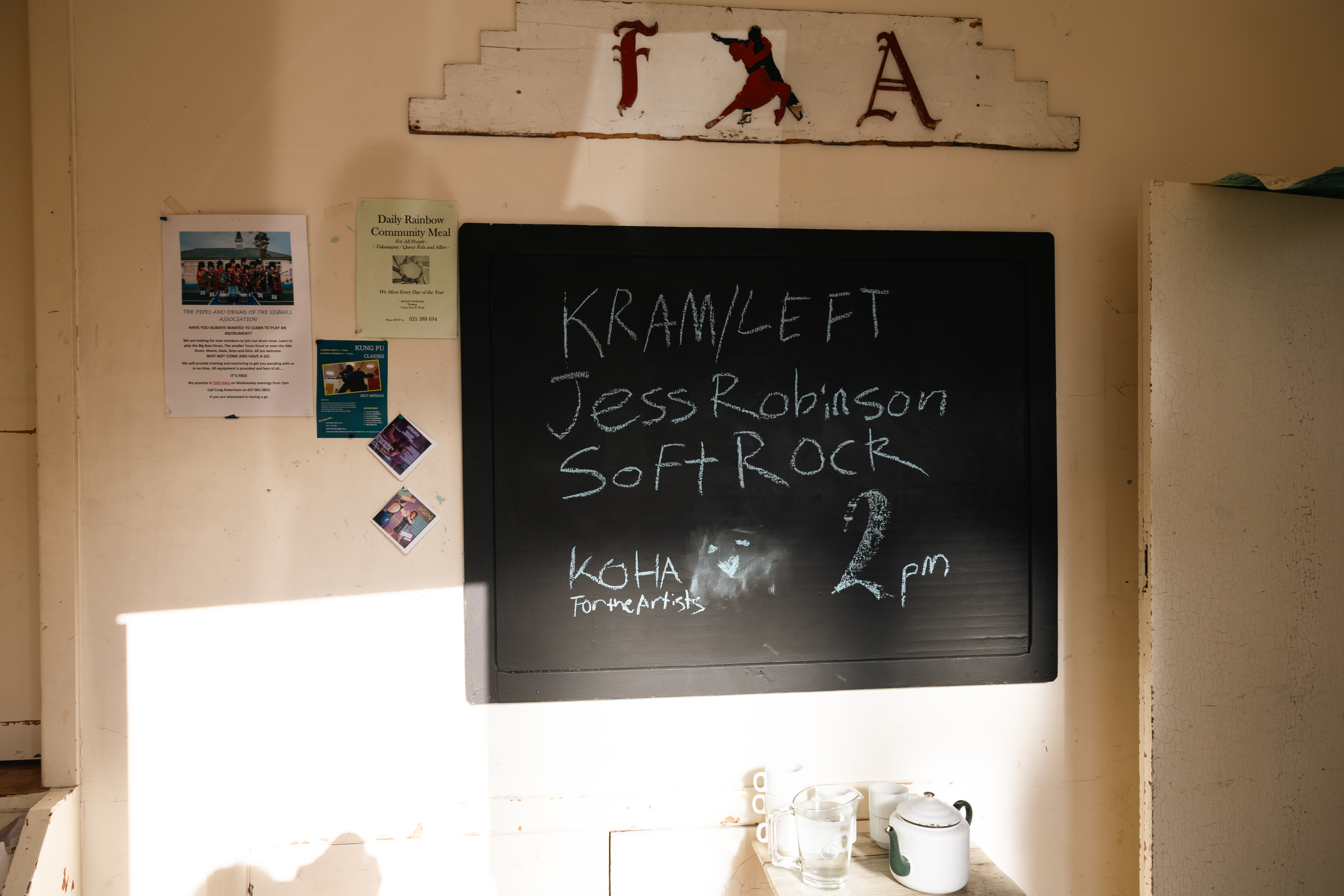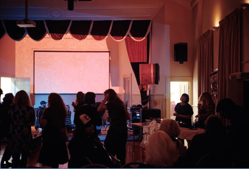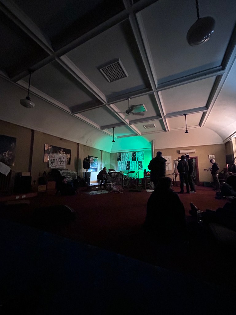 Commissioned to produce an artwork as part of the Outlier Festival, “celebrating the diversity of antipodean electronic music”, I considered the festival’s kaupapa of bringing together dancefloors with dedicated listening. I asked what it would be to produce a sound work that was not in my usual mode of performance action. There was a sense of hanging around the main event in this proposition. The festival’s location in the historic Hollywood cinema provided an option of using the lobby space. Much like the kitchen at parties, I knew that this area would house the social, volunteer work front and meeting point throughout the three-day festival. The structure of a series of sonic performances alternating between two stages would provide an ebb and flow of bodies and sound moving through the lobby and the cinema theatre.