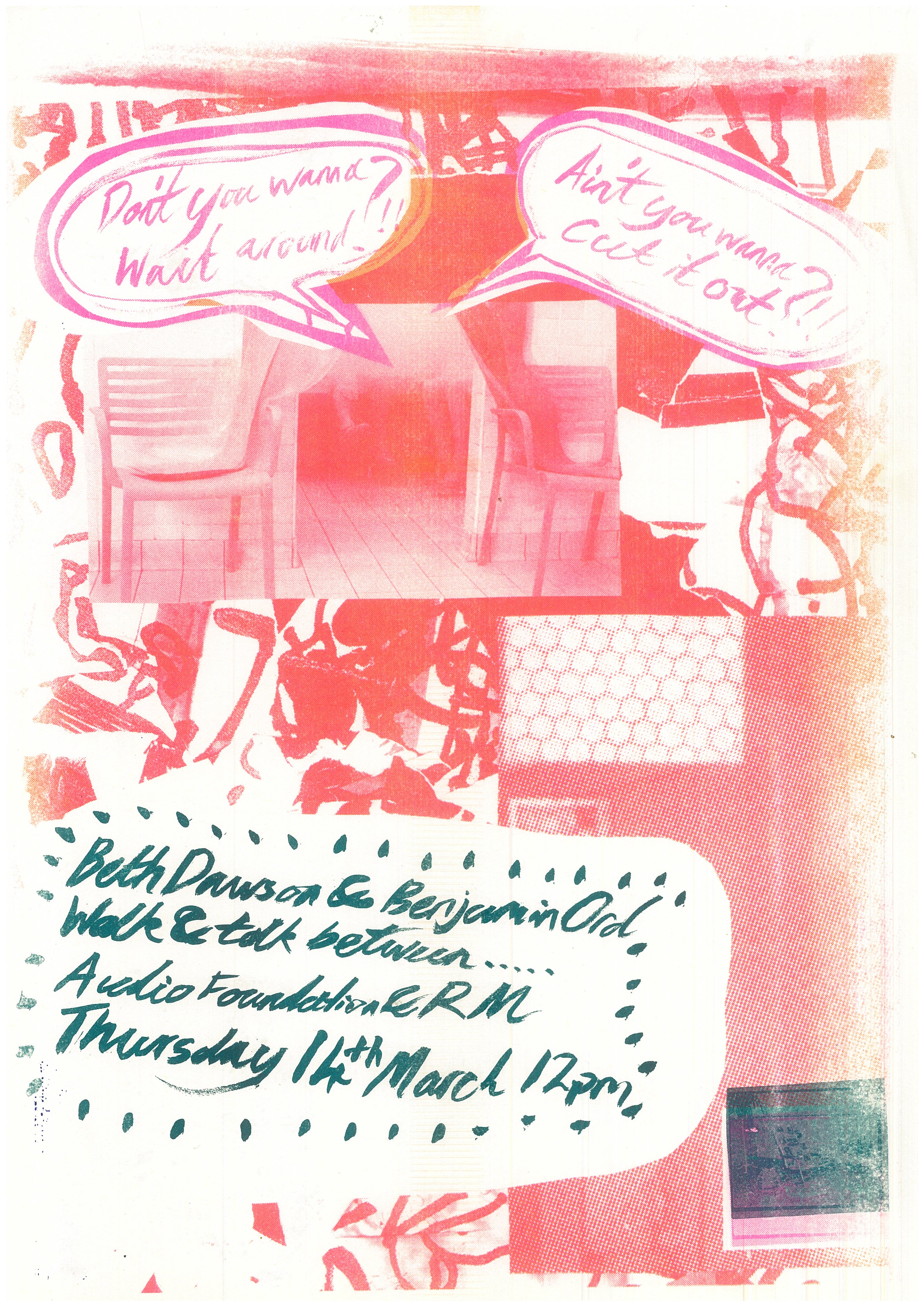 Special events Artist walk and conversation with Benjamin Ord Thursday 14 March, 12pm beginning @ Audio Foundation ending @ RM