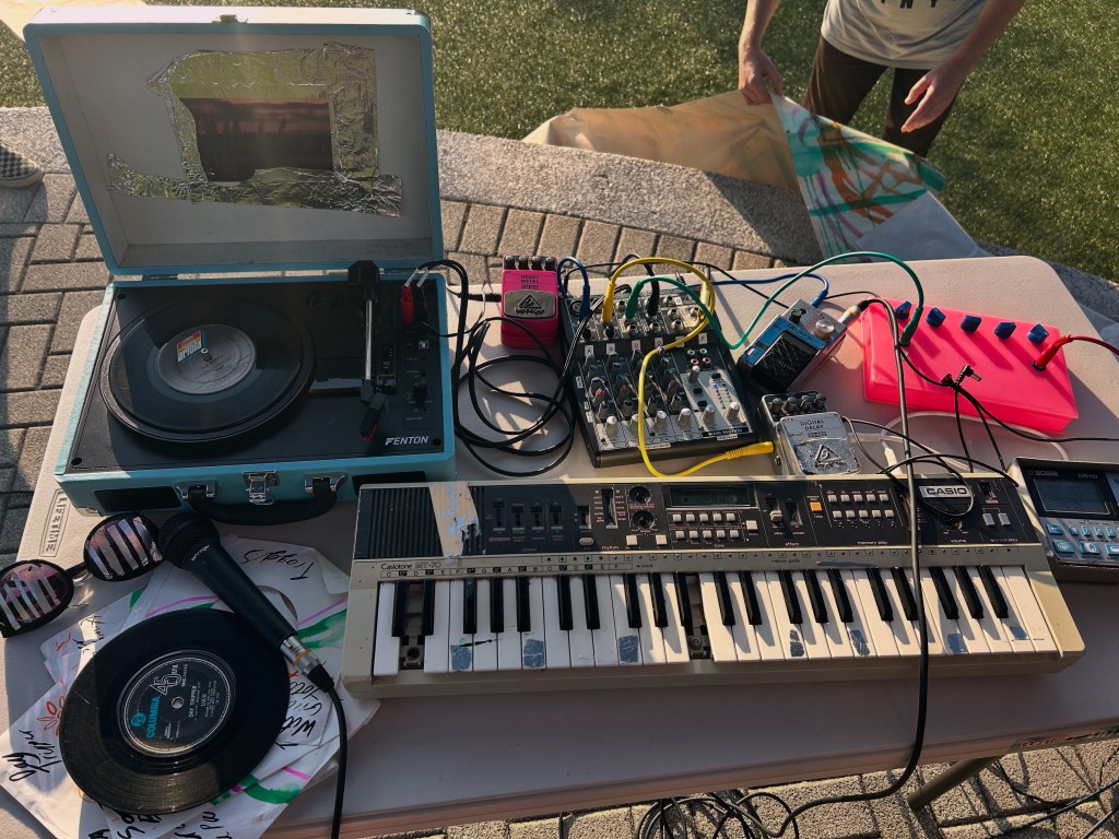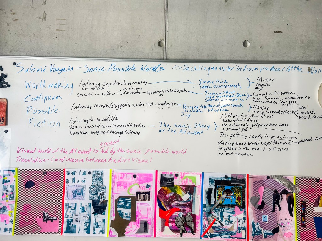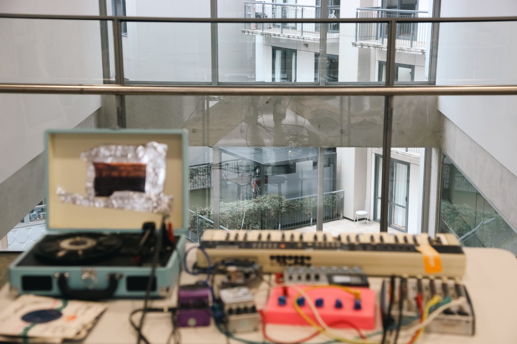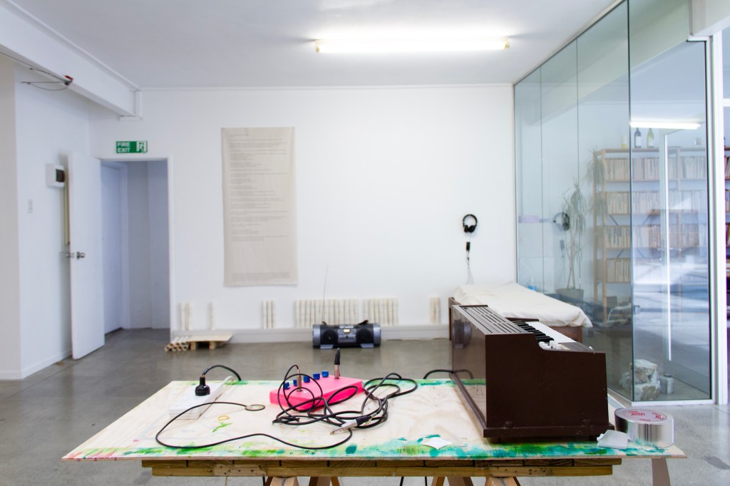 For Voegelin, listening is a way to reveal and suggest worlds that could exist. Through an engagement with listening in my practice, I aim to produce work that disrupts dominant narratives, supports marginalised communities and opens more inclusive spaces for being together. Through the mixing-desk at my noise table, I bring disparate sounds together, the crackle of scratched 7” records, broken beats of a 1982 Dr Rhythm drum machine, field recordings of crashing oceans and Karangahape footpaths, drawn out keyboard drone and vocal textures laid into walls of sonic environments that evoke the forgotten, neglected and overlooked. Collaging sounds that flow into each other reveal lost passages of real and space, a resonance of the strata of inner city Tāmaki can be heard as underground rivers, makeshift discos and friends gathering.