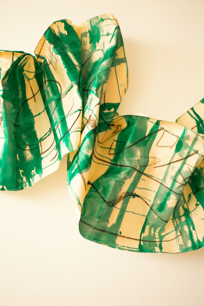 Stemming from research into the global resurgence of public bathing, the exhibition explores ideas of communal embodiment inherent to these radical democratic practices of anti-competition, anti-hierarchy, and anti-privatisation. In taking choreography as a tool for self-enactment, where the creative act relates to a group rather as opposed to the self-contained individual, the exhibition aims to consider art making as an activity rather than a finality or production line. In perpetual slippages between abstraction and representation, the internal and external, body and object, A Dance But No Figure stages art works which are continually lost, held and reformed in subtle gestures towards futurity.” Exhibition press release