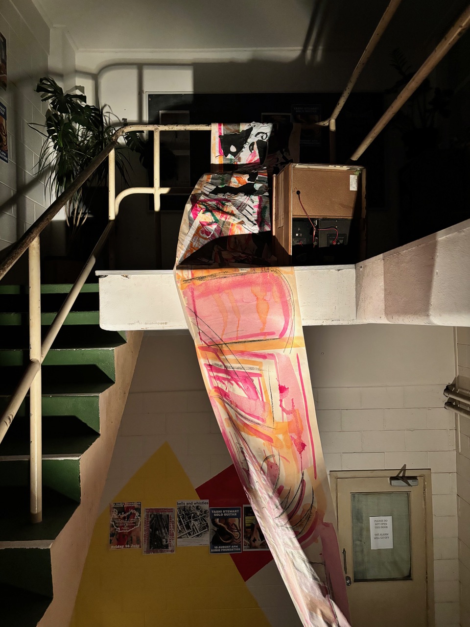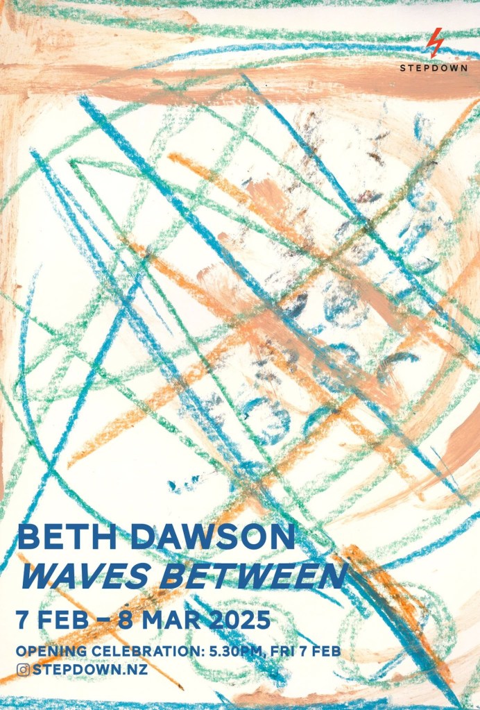 Stepdown is delighted to present Waves Between, an exhibition by Tāmaki Makaurau-based artist Beth Dawson, also known as Ducklingmonster. In this exhibition, Beth generates an audio-visual celebration of continuous interconnectedness through drawings, performance, collaboration, and recording.