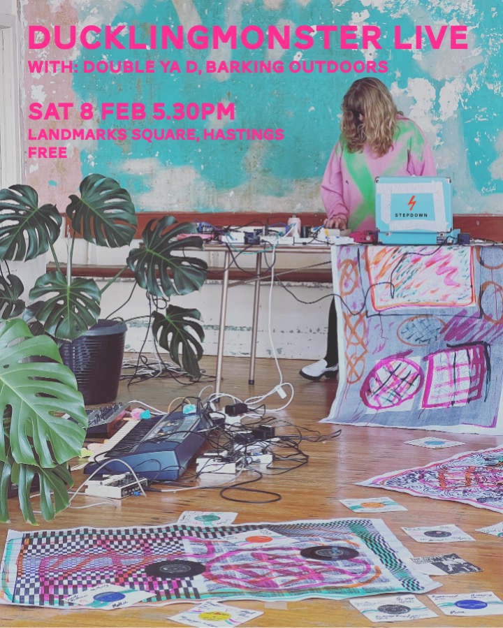 Ducklingmonster Live Performance With: Double Ya D, Barking Outdoors 5.30pm-, Saturday 8 February at Landmarks Square (103 Warren Street North, Hastings CBD) Free admission. No booking required.