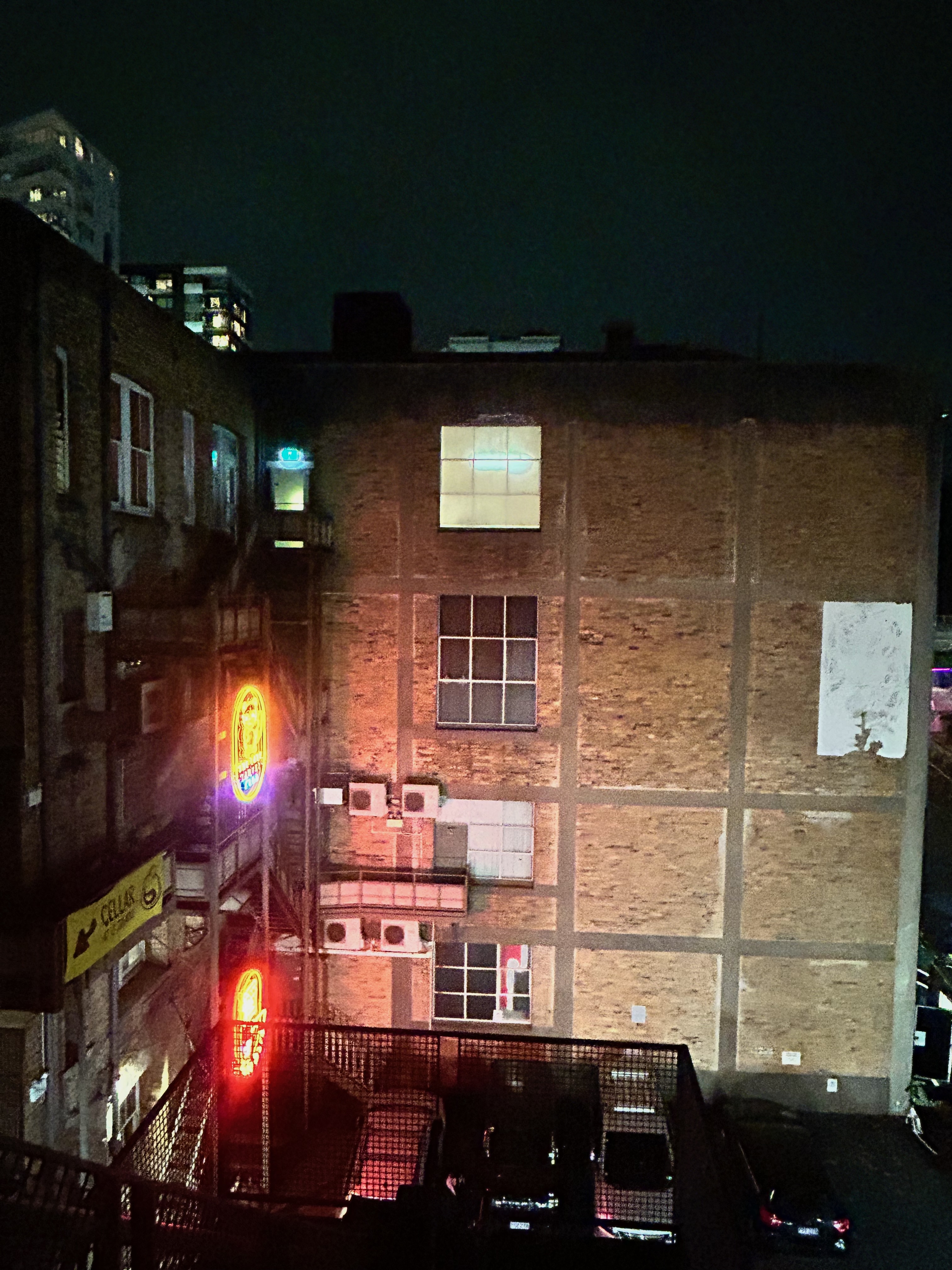 Speakers, like twisters, reach down and up. Yet still, spitting asteroids in all directions. The exteriors of buildings, one such direction. Wirings under table another, connecting drawings where once they previously laid.